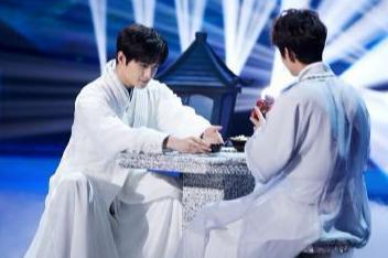 杨洋与对面的演员共同演绎古代人同袍喝酒时的小情节,只见他双手做“请”的手势方便对面的人倒酒。左手朝上,右手向下,微微低头,温顺如羊。