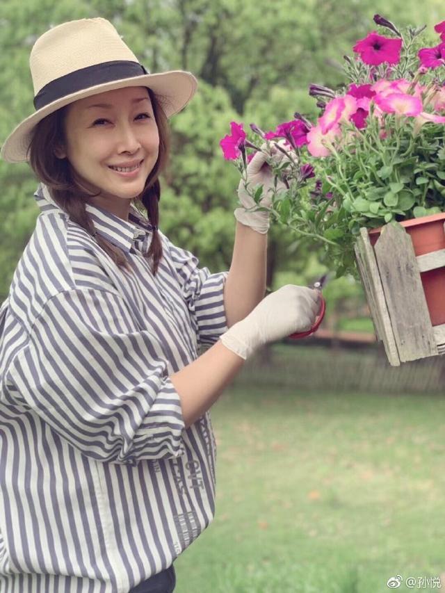 不过孙悦这下巴好像是尖得有点过分了,都快认不出她来了,一身休闲轻松打扮的孙悦戴着草帽拿着小剪刀在剪花枝,笑起来的样子很阳光灿烂,就是觉得这张脸有点垮啊。