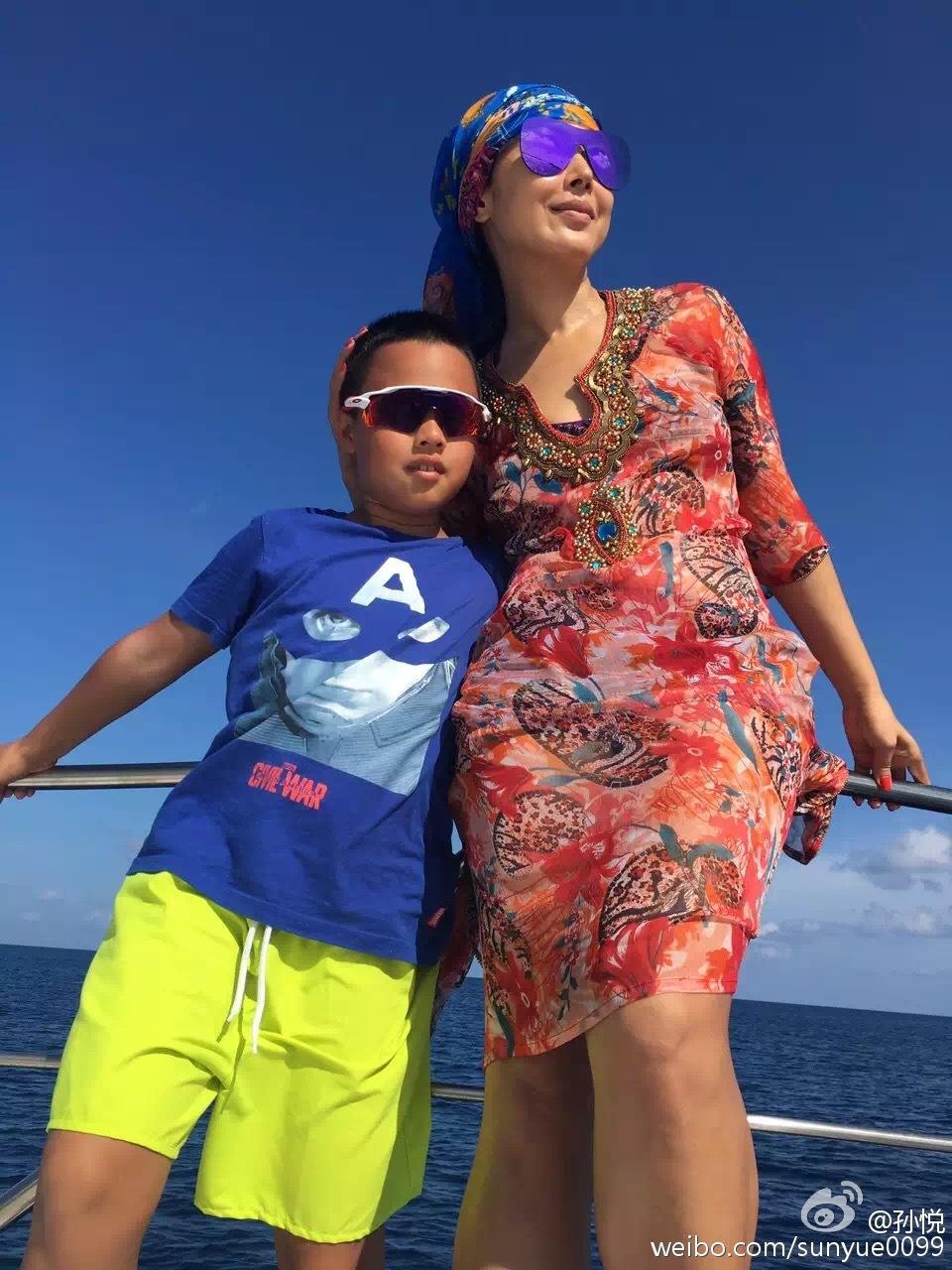 看到孙悦早先晒出的亲子照还会觉得这个明星还是蛮真实的,这就是正常家庭妈妈带着儿子在外面玩有的样子,全是大花的裙子,海滩风情的头巾,被晒黑的皮肤,还是很贴切事实的。