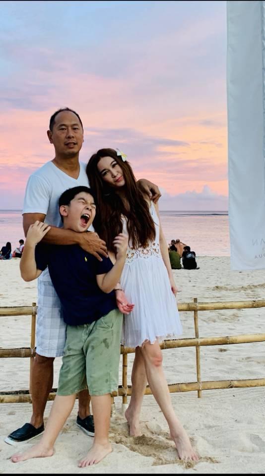 温碧霞一家三口外出游玩,老公像父亲,养子何国伦已高过肩膀