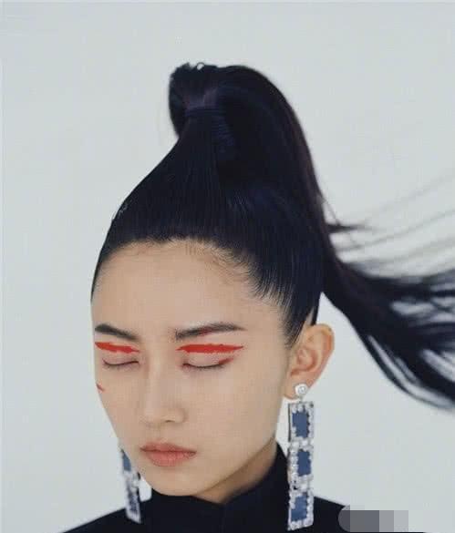 这眼睑上如此红肿的痕迹,难道是新”割“的双眼皮吗?镜头再拉近一看,原来是在眼睑上画了一道,如此特别的妆容,一般人真的是HOLD不住啊!为了艺术,陈钰琪果然对自己够狠!