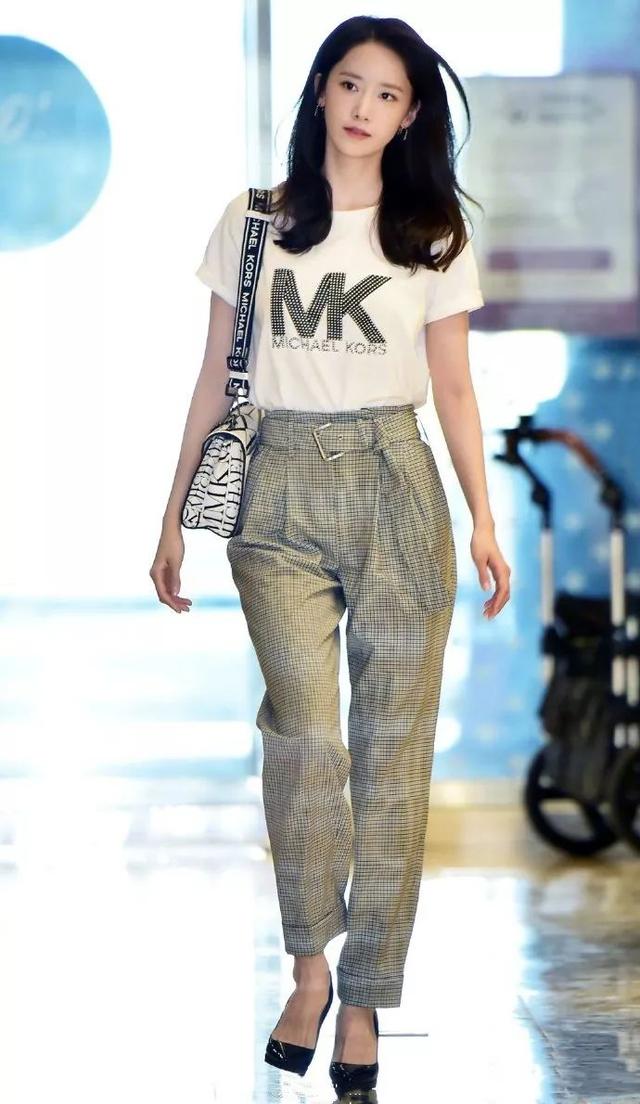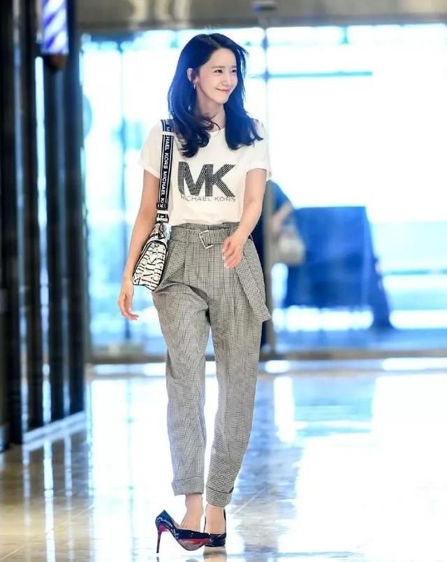 休闲的穿搭,也离不开一些基础的搭配法则,比如说突显腰线。林允儿出席活动没有穿着突显气质的小裙子,而是一条更加显腿长的格纹西装裤。裤子采用的是西装面料,精致的灰色格纹,让休闲的穿搭也有了一点职场的气息,搭配上恨天高就更有了一种女强人的气质。