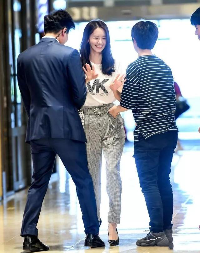 虽然发生了高跟鞋掉落的小插曲,但是看得出林允儿当天的心情还是非常不错的,一路上还热心的和粉丝打招呼。对于像林允儿这种气质干净的女生来说,越是简单的穿搭造型,反而越是能够突显出她自身的气质。