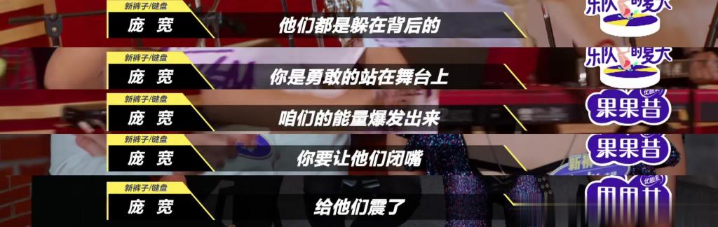 上场之前弹幕的画风已经是这样了:“ 这是要给新裤子拉后腿啊”、“ 这个是小岳岳的妹妹吗”、“新裤子邀请她是想放弃比赛么”。