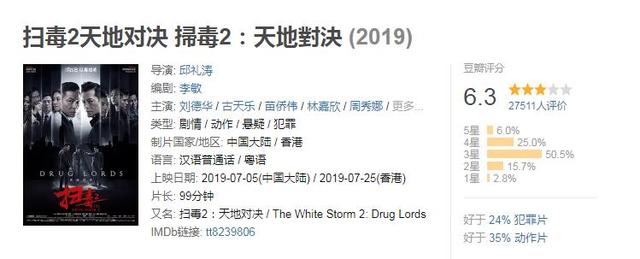 扫毒2上映3天票房斩获4亿,豆瓣评分仅6.3,差评的都说了啥?