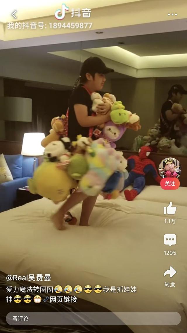爸爸的电影和舞台剧先后推出,Feynman就在微博、抖音齐齐出动帮吴镇宇宣传。发短片话不够,Feynman跟爸爸去北京宣传电影的时候,亲自出动帮买票看电影的粉丝夹公仔,相当给力,创意值得一赞!