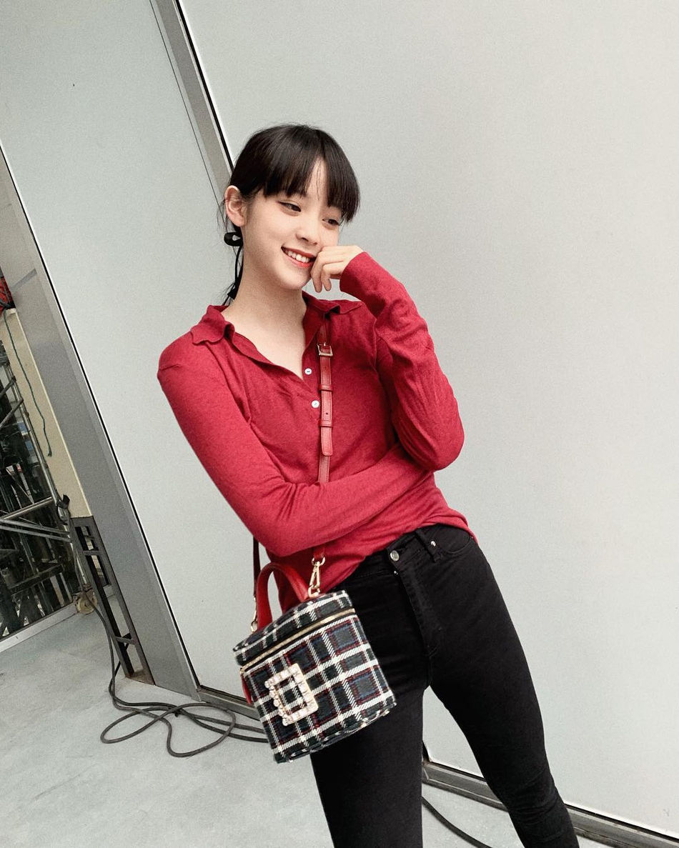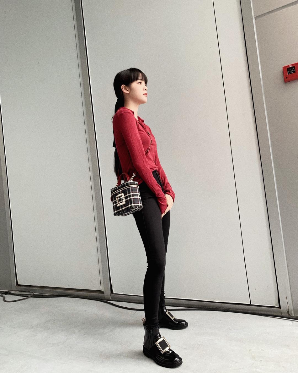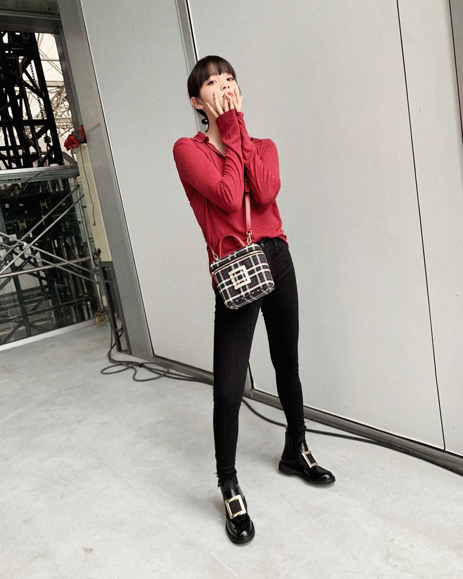 欧阳娜娜在个人社交网站上传了一套照片。图中欧阳娜娜身穿红色衬衫,搭配黑色紧身长裤秀出大长腿,面对镜头摆出各种造型,露出甜美笑容。