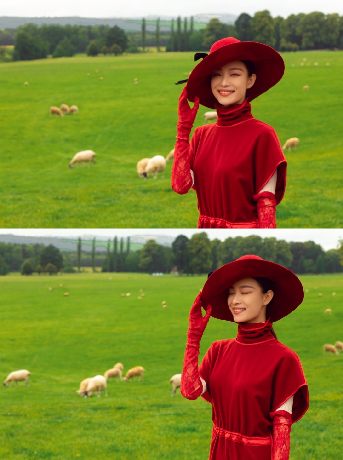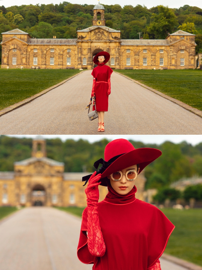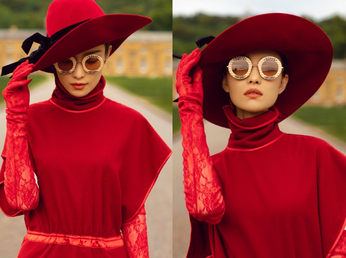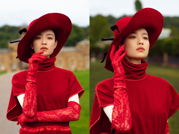 倪妮31岁生日放高级大片 红裙红帽红手套展现复古风情