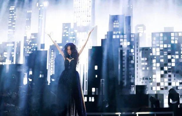 一袭黑色抹胸礼服,让莫文蔚的女神气质展现的一览无余,波浪的黑色长发,更是浪漫且温柔的感觉,与灯光和舞美的配合,气氛更是相当活跃。