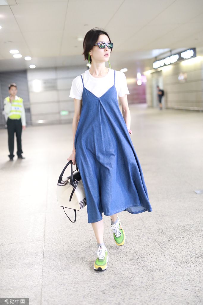 杜鹃穿背心裙现身机场表情高冷 身材苗条气场强大