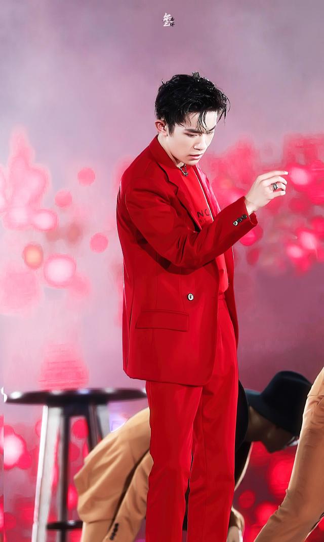 舞蹈表演,易烊千玺以一身大红色西装套装搭配礼帽与易燃装置再度合体,带来不一样的浪漫舞台,一支《When You Want to Love》表达对粉丝一直以来的感谢和支持。