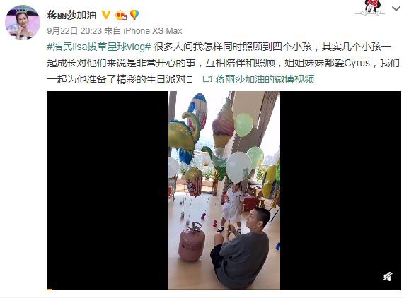 9月22日,陈浩民妻子蒋丽莎微博分享了一家六口的日常Vlog视频,一家人正在为Cyrus(儿子陈璟逸)布置生日派对,蒋丽莎一边拍摄一边采访,陈浩民一边准备一边答题,一家人其乐融融相当幸福。不过这个视频完整展现了这六口之家的大豪宅,有两层、客厅超大、有泳池、阳台可看海。