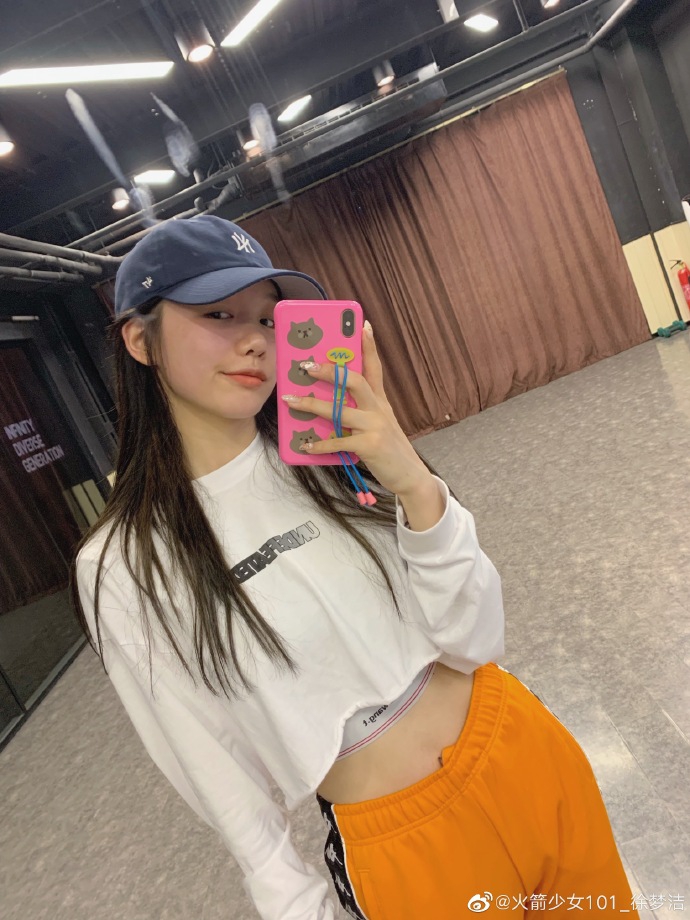8月19日,火箭少女101成员徐梦洁在微博晒出一组自拍并配文:“啊哈,我自拍打卡了噢。”照片中,徐梦洁穿着运动宽松的服装露出小蛮腰,似是刚刚练舞完毕,举着手机对镜自拍并露出招牌甜笑。粉丝们都非常开心地表示:“终于等到新鲜的小彩虹啦!”