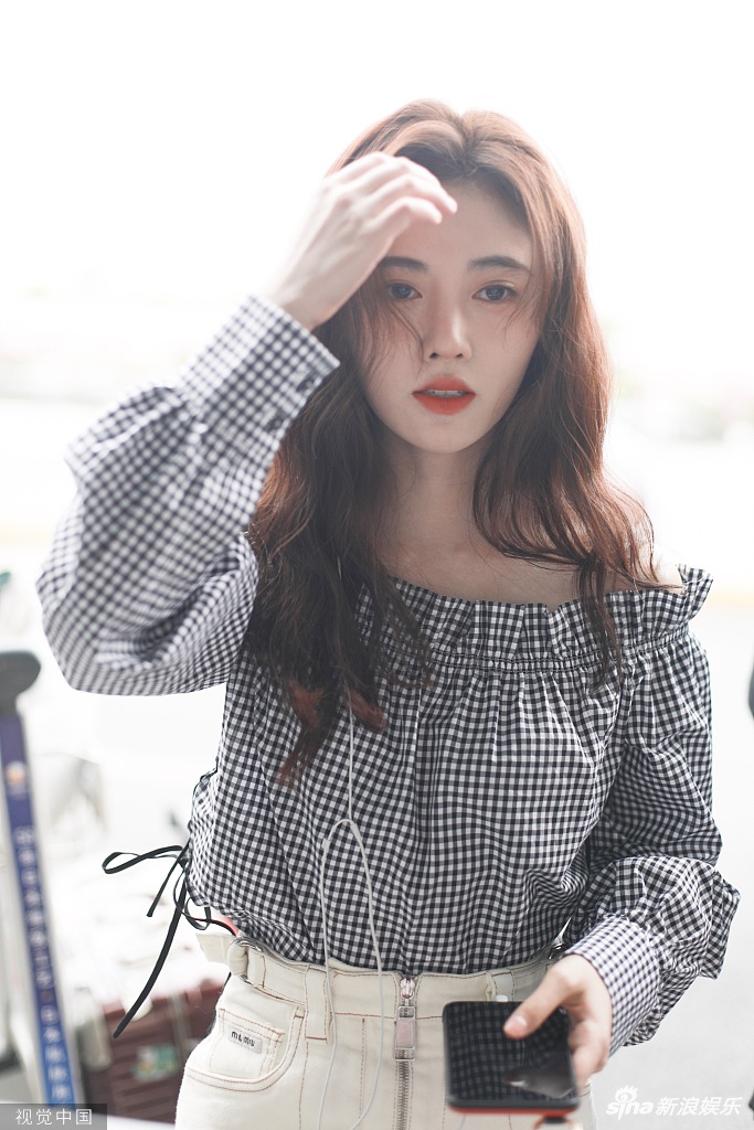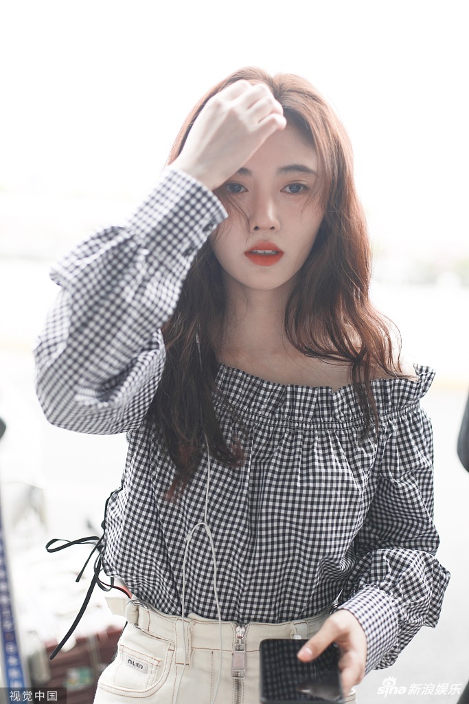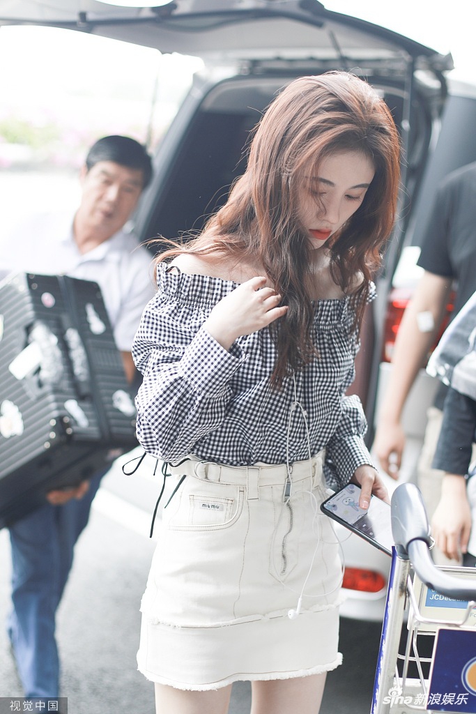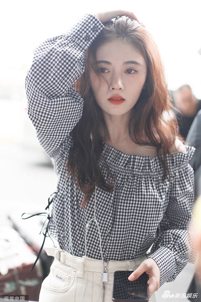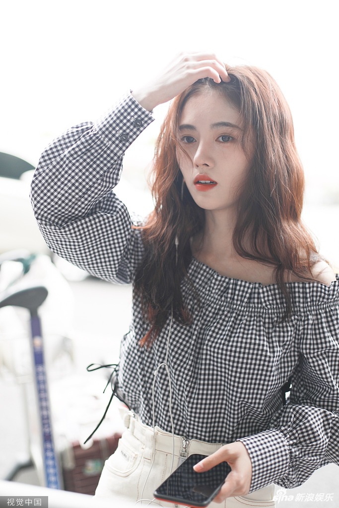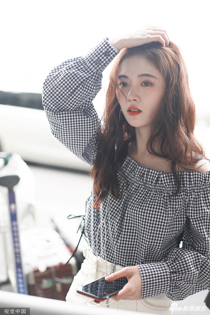 8月22日,鞠婧祎现身上海机场。鞠婧祎穿着黑白格子一字肩上衣,小秀香肩清新可人,搭配米白色小短裙,一头棕色长卷发显得温柔大方。随手撩发露出不被遮挡的精致五官,女人味十足。(视觉中国/图)