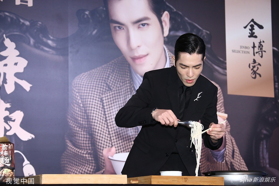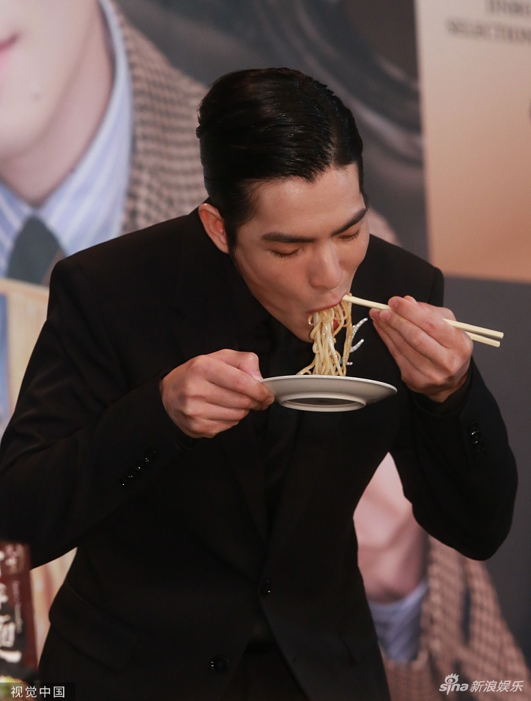 萧敬腾穿西装梳油头 捞面吃海带反差感满满