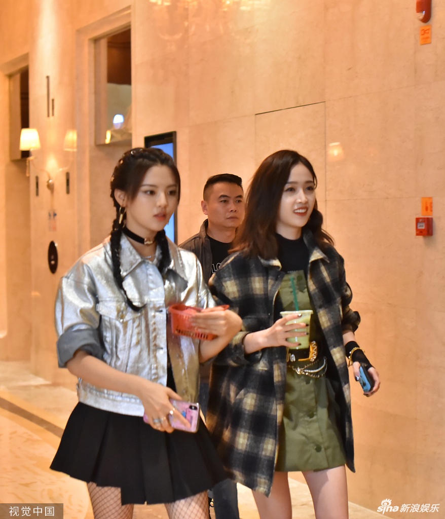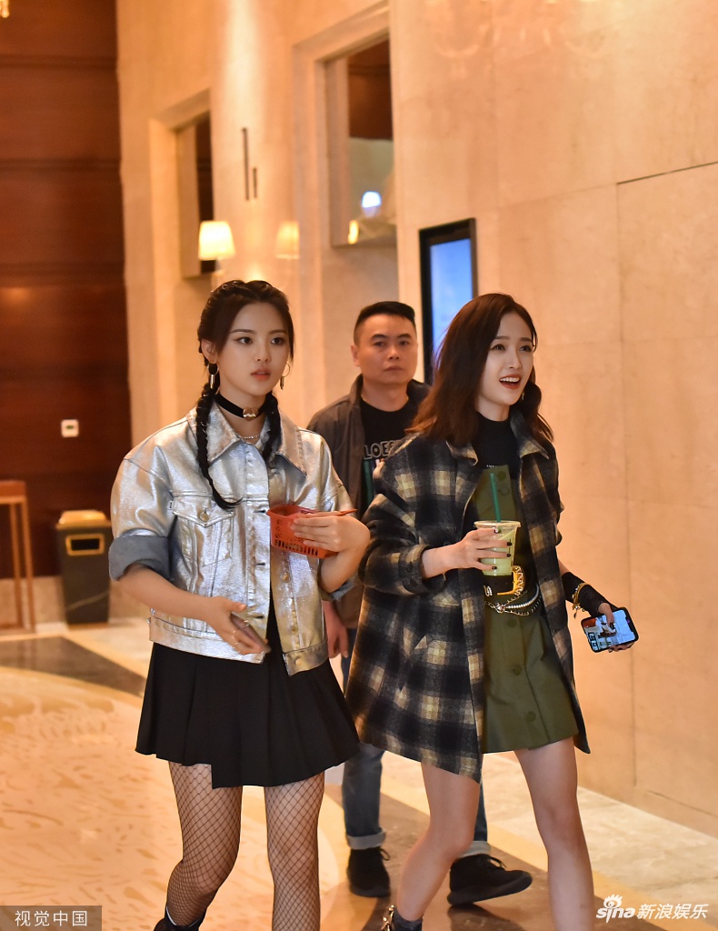 杨超越穿渔网袜又美又飒 吴宣仪手拿饮料露长腿甜笑可人