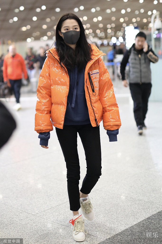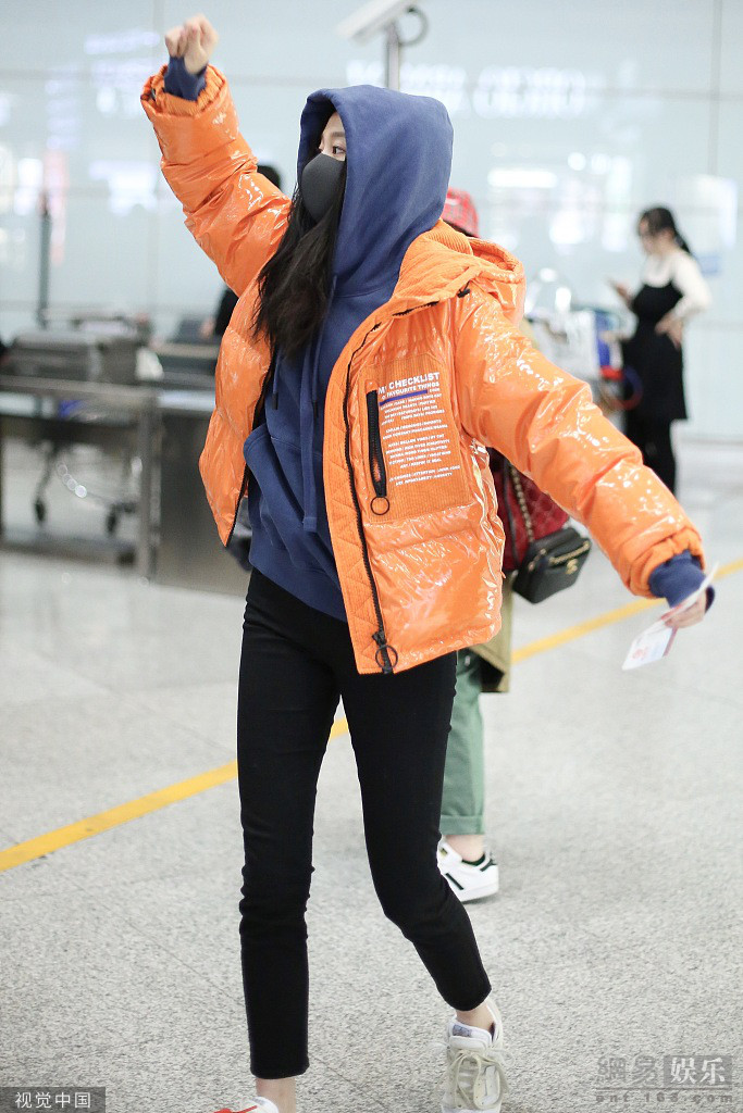 关晓彤现身机场。她长发披肩口罩遮面露灵动大眼睛,穿橘色羽绒服大秀纤细美腿。