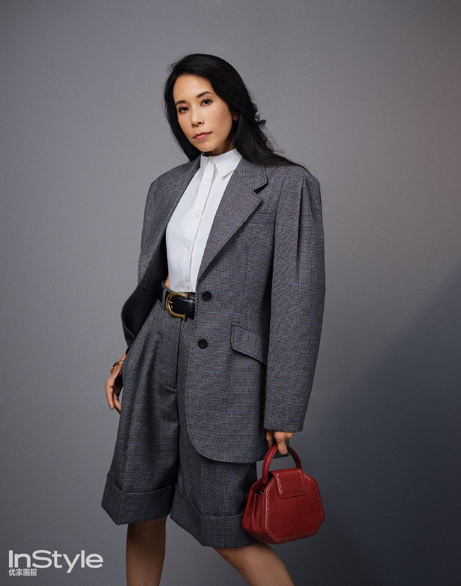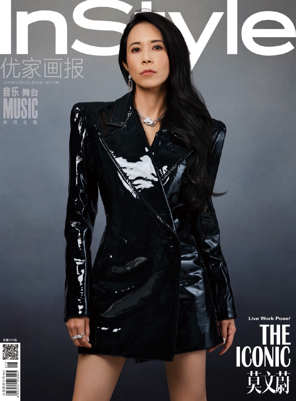 莫文蔚身着黑色漆皮短裙变身冷艳特工 西装穿搭飒气迷人
