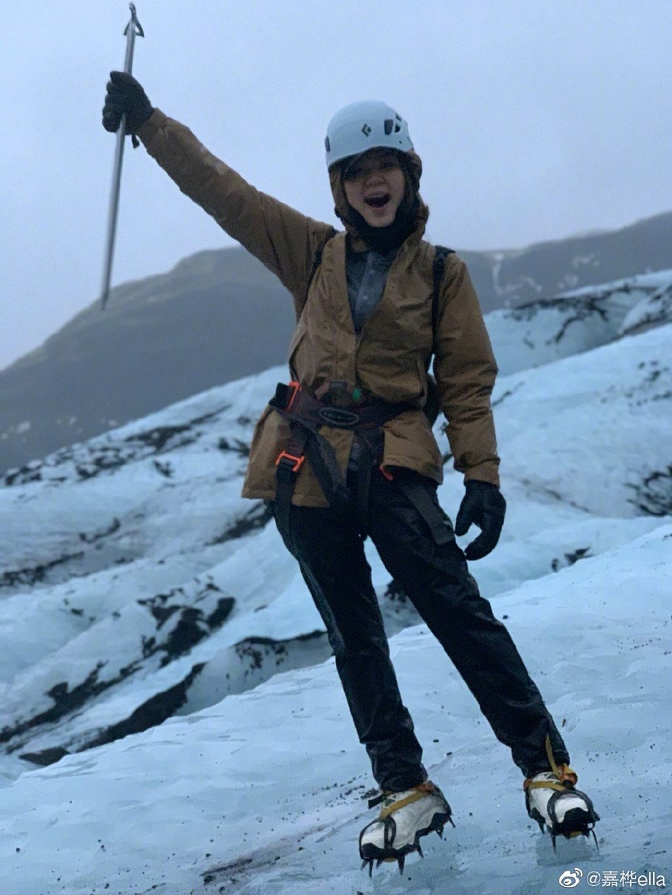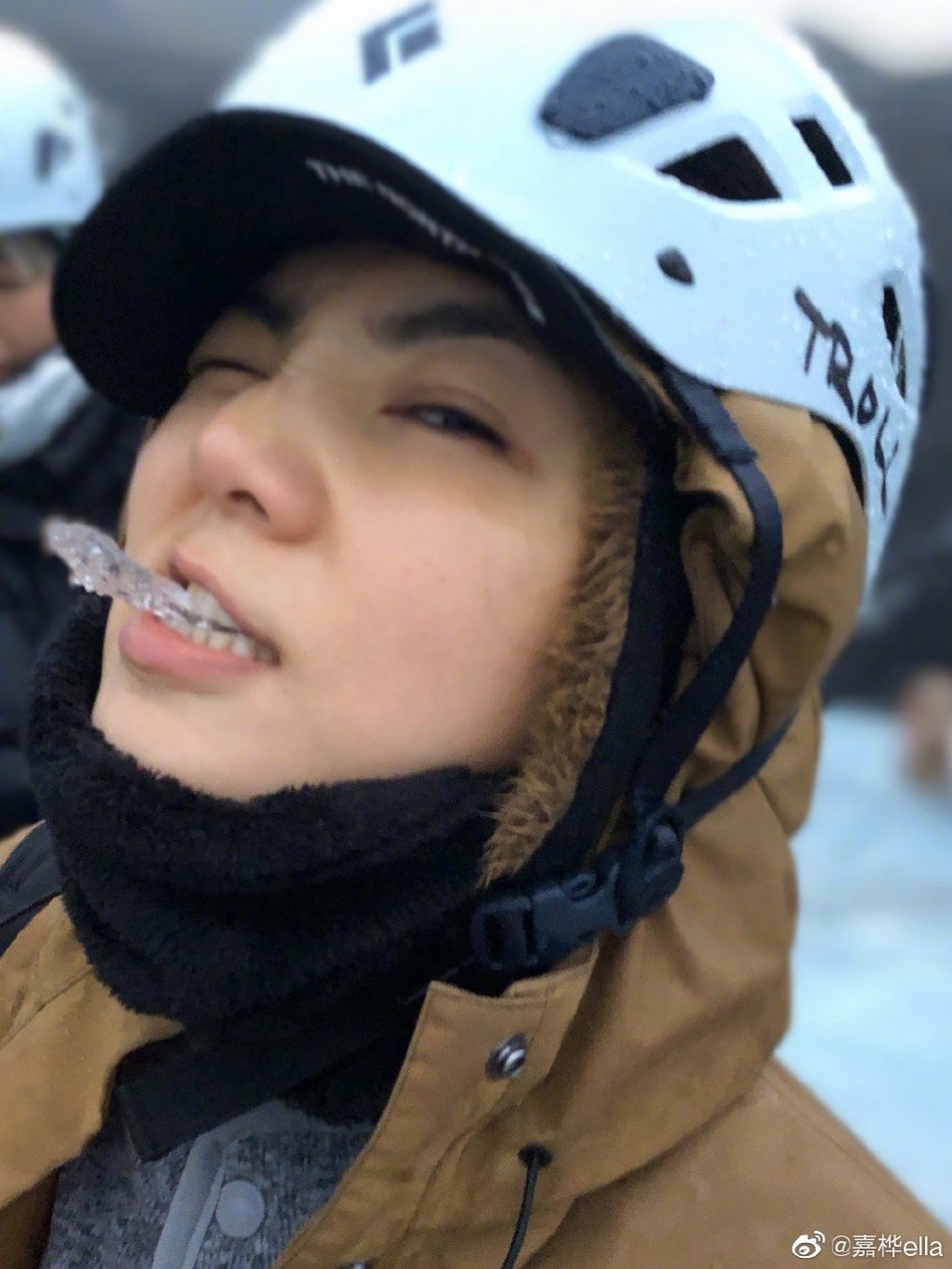 12月30日,Ella在微博晒出去冰岛旅行攀登冰川的照片,并发文:“我登上冰川了!还吃了上面的冰!”照片中,Ella嘴里吃着冰块出镜,尽显搞怪本色。