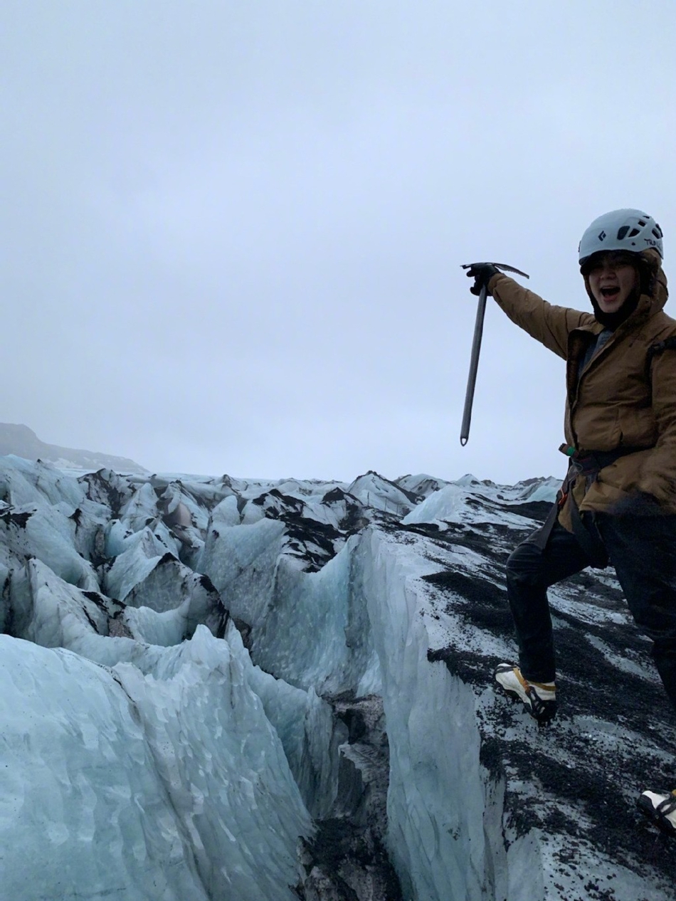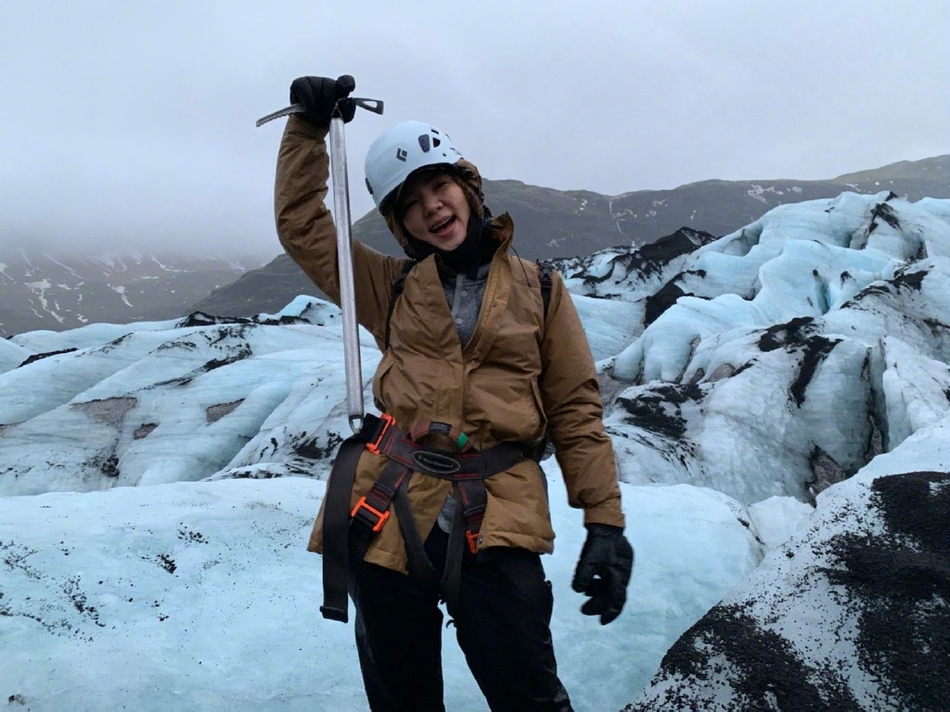 Ella游冰岛攀登冰川 嘴里吃着冰块出镜尽显搞怪本色