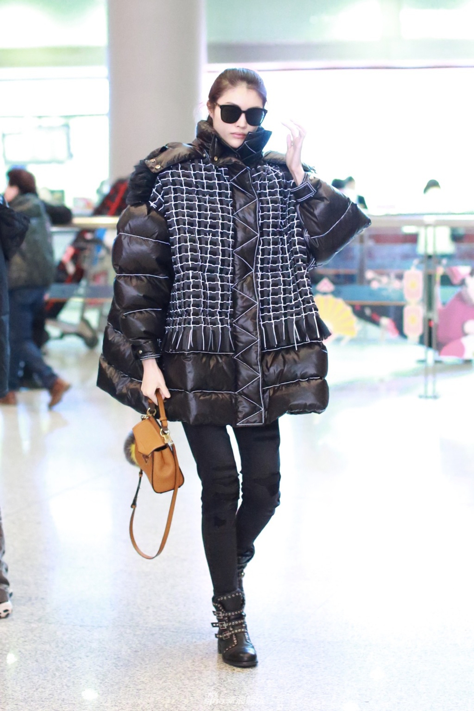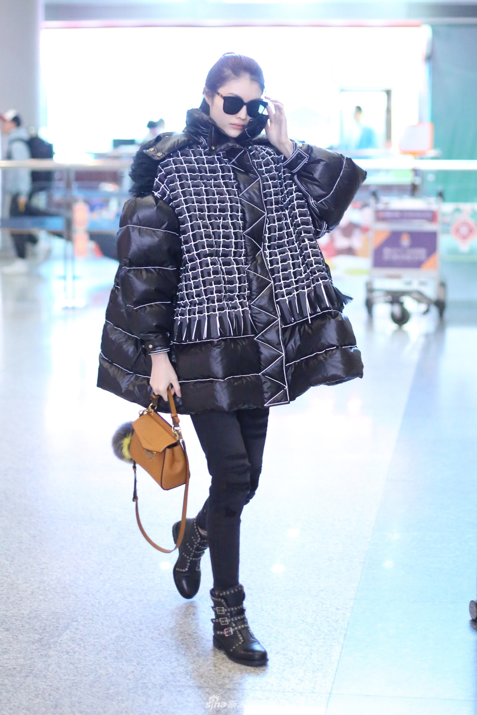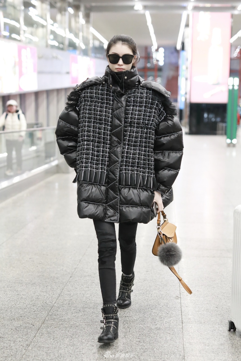 2020年1月9日,何穗现身机场,她身穿黑色拼接款面包服,宽松的上半身设计令何穗化身行走的蛋糕,不过超模就是有颜任性,拥有大长腿,即使穿上对身材要求极高的款式也能轻松驾驭。