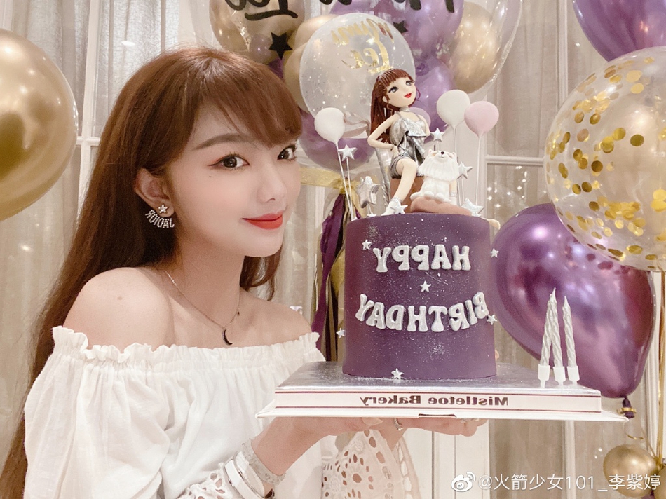 火箭少女李紫婷生日晒照 对镜甜笑白裙温婉大秀一字肩