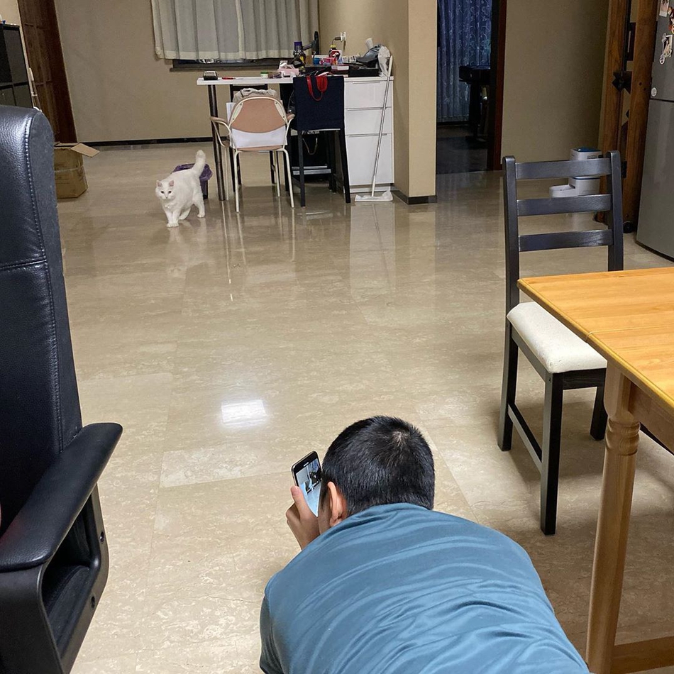 网络红人papi酱在2019年11月公布怀孕喜讯,之后不仅没有选择停工,反而会经常在个人社交平台分享生活。近日,papi酱便晒出老公老胡为家中猫咪拍照片的动态:身穿家居服的老胡趴在地上双手举着手机,正在给猫咪拍照,看起来十分辛苦。连papi酱也感慨,“不容易的老胡”。