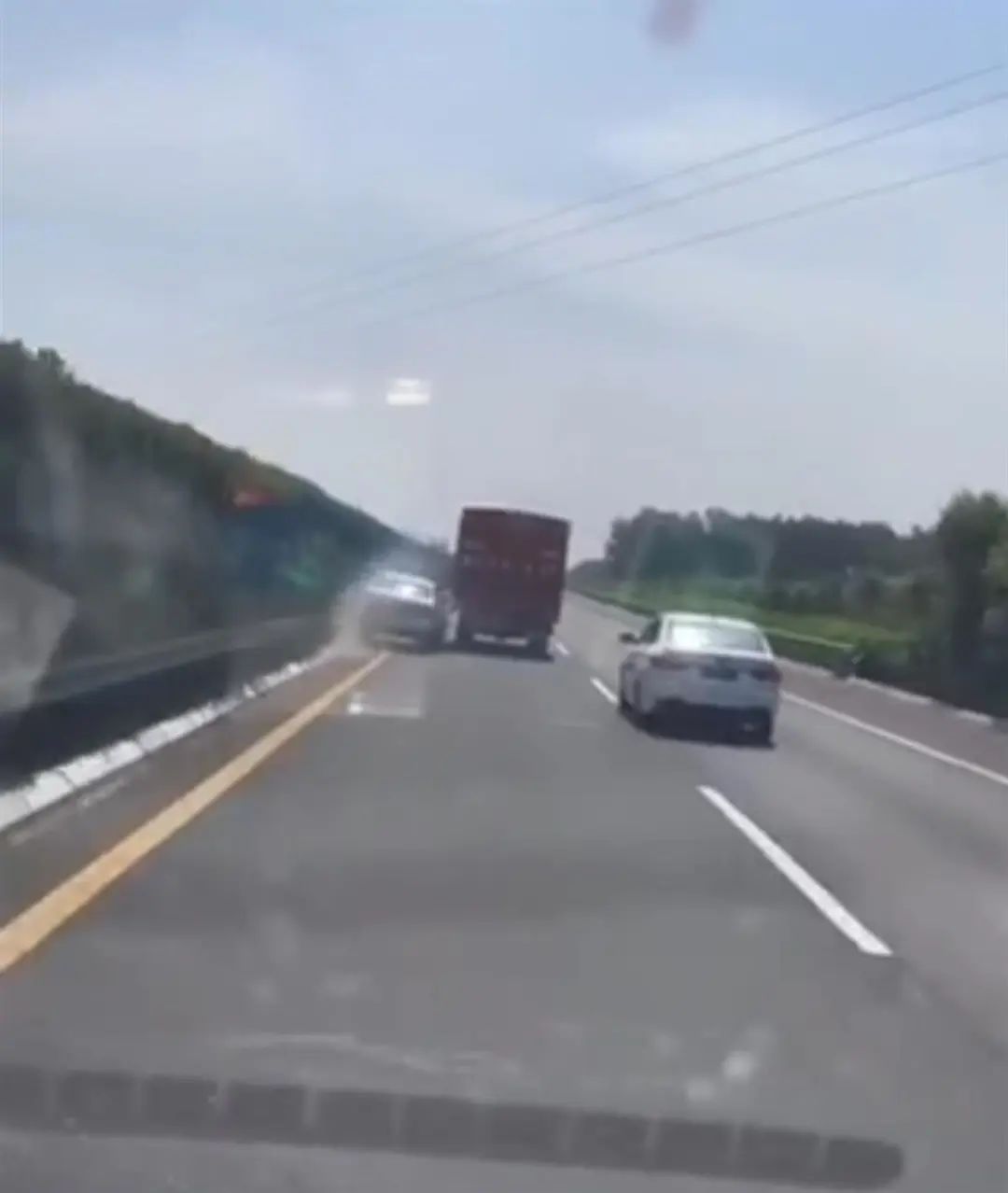 太疯狂!货车高速上连续别车,致多辆小车撞上护栏!司机跳下高速逃逸