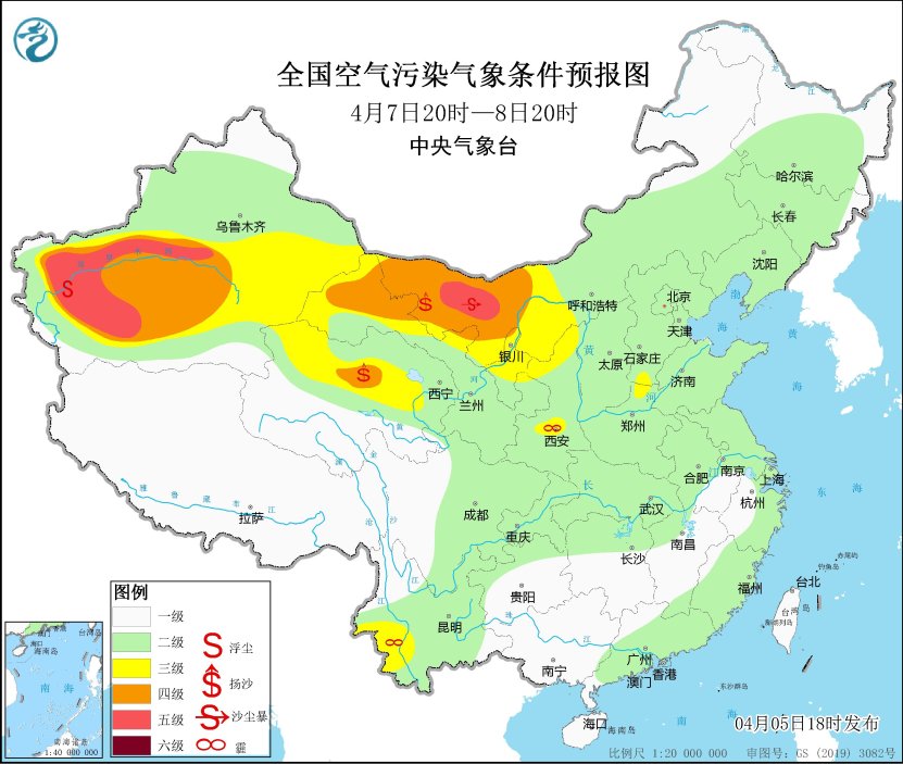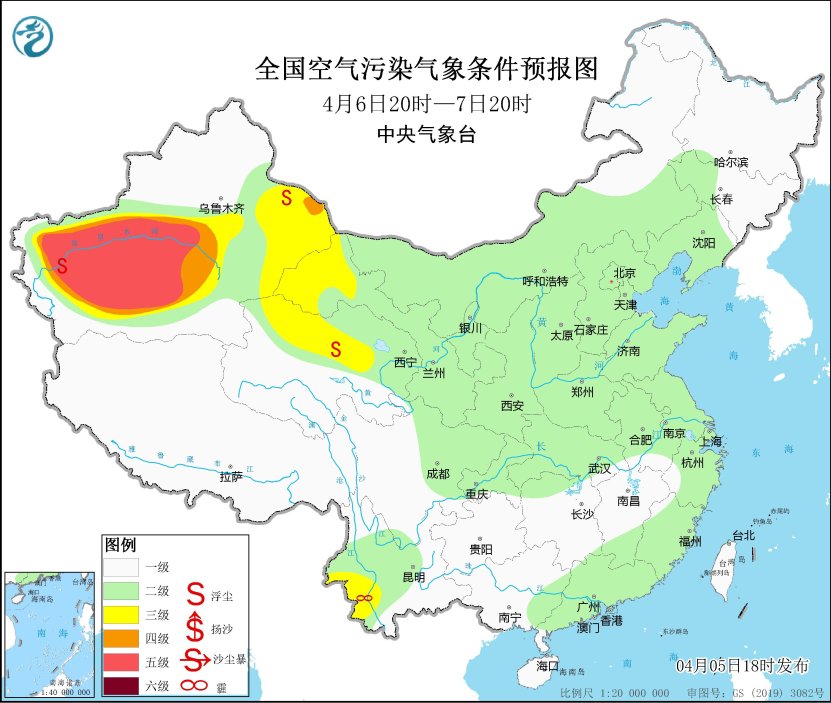 未来一周,全国大部地区大气扩散条件较好,无明显霾天气。但受大风影响,5日夜间至9日,新疆东部和南部、内蒙古西部、甘肃中西部、宁夏、青海北部等地的部分地区有扬沙或浮尘天气,局地有沙尘暴。