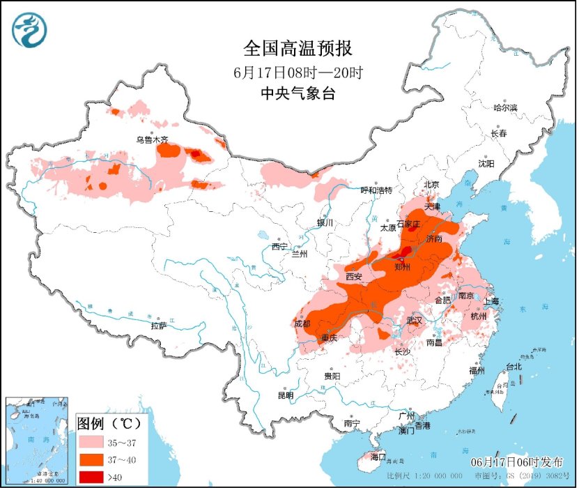 在高温方面,昨日,新疆、陕西、河南、四川、重庆、湖北、湖南、安徽等地出现高温天气,全国共有18个国家级气象站最高气温突破月极值。预计今天白天,华北南部、黄淮、江淮西部、江汉、江南北部、西北地区东南部、西南地区东部以及内蒙古西部、新疆吐鲁番盆地和南疆盆地等地有35~39℃高温天气,其中河北南部、河南中北部、新疆吐鲁番盆地等地局地可达40℃以上。中央气象台今晨继续发布高温黄色预警。明后两天,随着降雨落区的东扩,上述地区高温天气将结束。