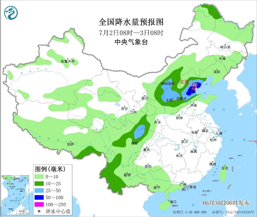 此外,未来三天,东北地区、华北、黄淮、华南地区西部和南部及云贵地区等地多分散性阵雨或雷阵雨,部分地区日降雨量可达中到大雨,局地暴雨或大暴雨。其中今天,贵州西部、云南东南部、广西西南部、河南西南部、湖北西部、河北中部、辽宁东部、吉林中东部、黑龙江南部等地部分地区有大到暴雨。
