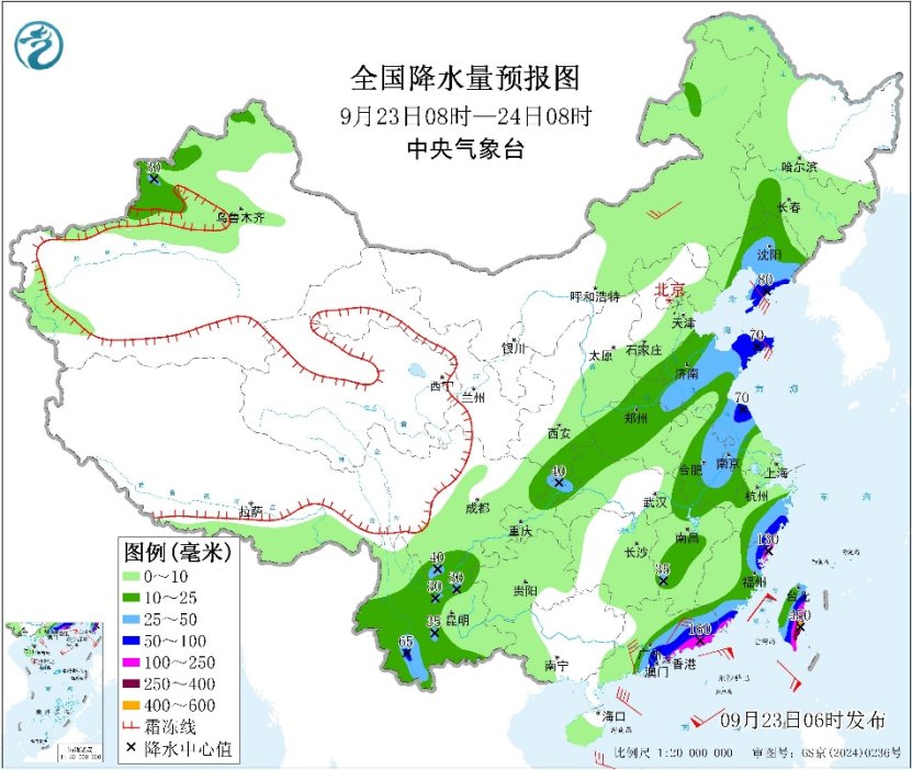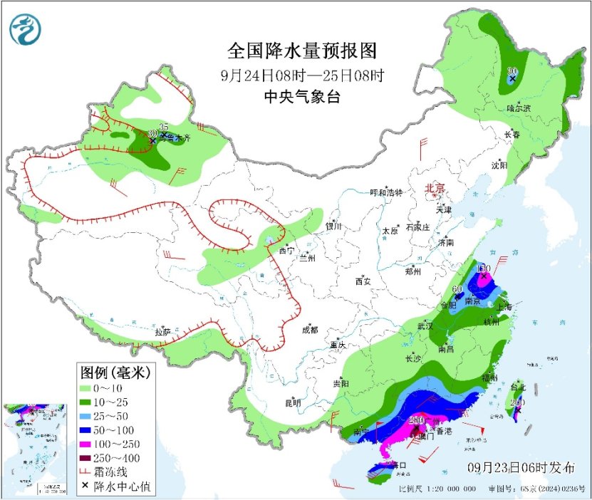降水方面,今天,台湾岛中东部及广东中部和东部、福建东北部和东南部、浙江东南部等地有大到暴雨,其中,台湾岛东部、广东东部、福建东北部和东南部、浙江东南部等地部分地区有大暴雨,局地特大暴雨(250~450毫米)。明天,广东、海南北部等地降雨进一步发展,其中广东大部地区有暴雨到大暴雨,局地特大暴雨。