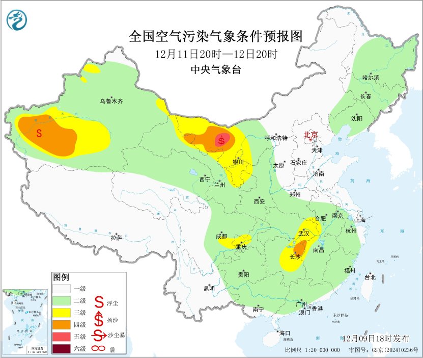9日夜间至10日,华北南部、黄淮西部、江汉、四川盆地等地大气扩散条件一般,部分地区有轻度霾,局地中度霾。11日起,受冷空气和降水天气共同影响,上述地区的大气扩散和湿清除条件逐渐转好。