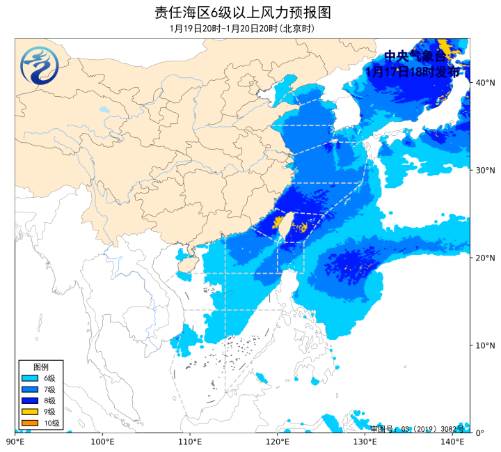预计,20日夜间至24日白天,渤海、渤海海峡、黄海大部海域、东海大海域、台湾海峡、台湾以东洋面、巴士海峡、南海大部海域将先后有6~8级、阵风9~10级的大风,其中21日白天至22日夜间,台湾海峡部分海域风力可达9级、阵风10~11级。