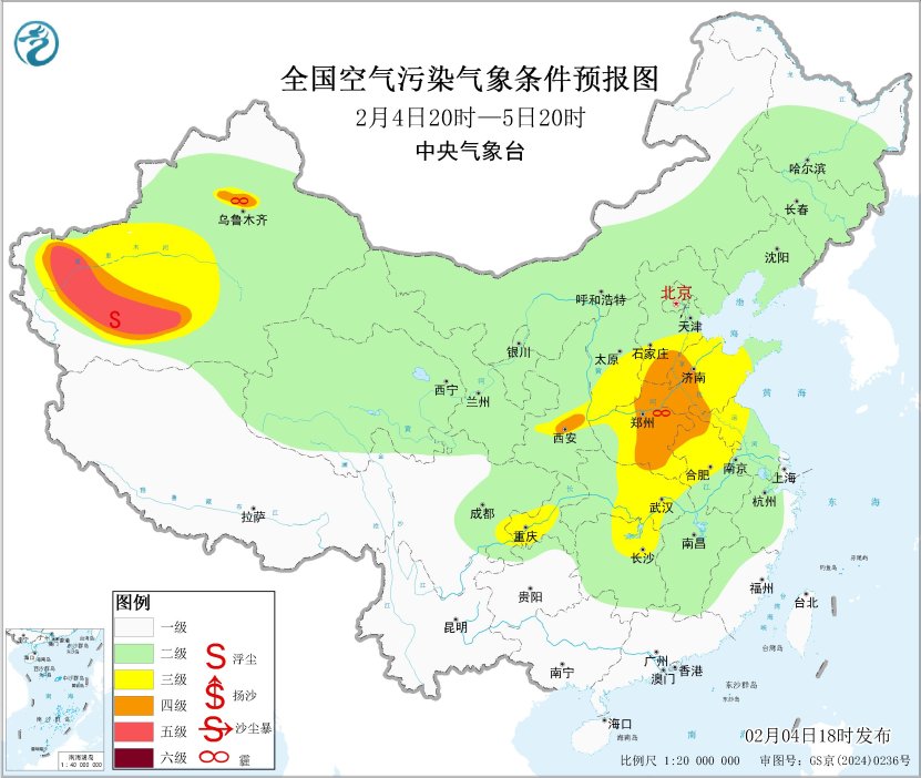 4日夜间至5日白天,区域部分地区有间歇性轻度霾天气。5日夜间起,区域大部地区大气扩散条件转好。