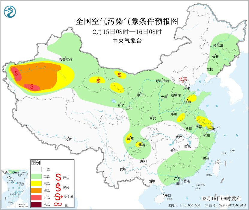 15日,甘肃西部、新疆东部和南部等地有扬沙或浮尘天气。16日至18日,新疆天山北坡等地的大气扩散条件一般,有间歇性轻度霾。