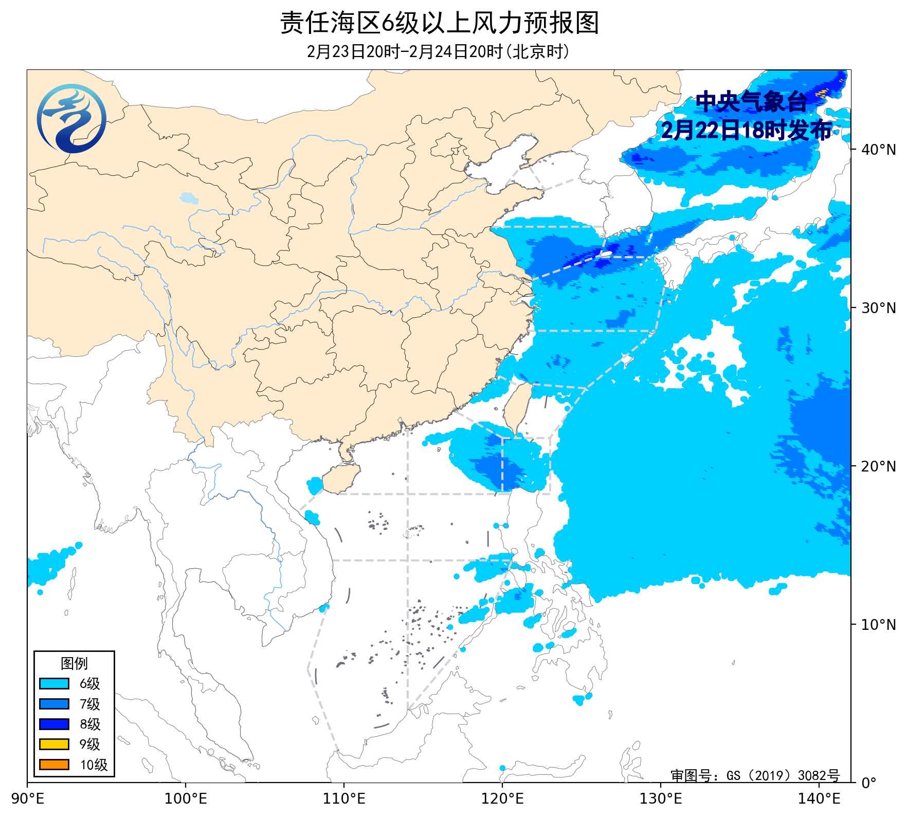 23日20时至24日20时,黄海南部海域将有5~7级、阵风8级的偏东到东北风,东海北部海域将有5~6级、阵风7级的偏东转偏南风,东海南部海域将有5~6级、阵风7级的东南风到偏南风,台湾海峡将有5~6级、阵风7级的偏北风减弱到4级以下的偏东风,巴士海峡、南海东北部海域将有4~6级、阵风7级的偏东到东南风。