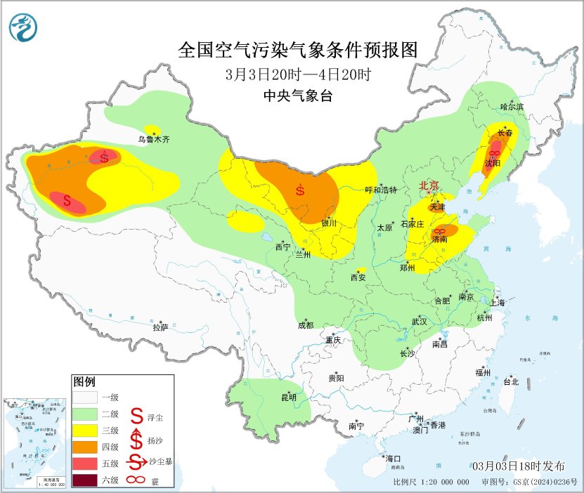 3日夜间起,受冷空气影响,华北中部大气扩散条件逐渐好转,但华北南部、黄淮中西部、东北地区南部等地大气扩散条件维持一般。4日至6日,多冷空气活动,全国大部大气扩散条件较好,无明显持续性霾天气。7日至10日,华北中南部、黄淮等地的大气扩散条件一般,将有轻至中度霾。此外,4日,西北地区的部分地区有扬沙或浮尘天气。
