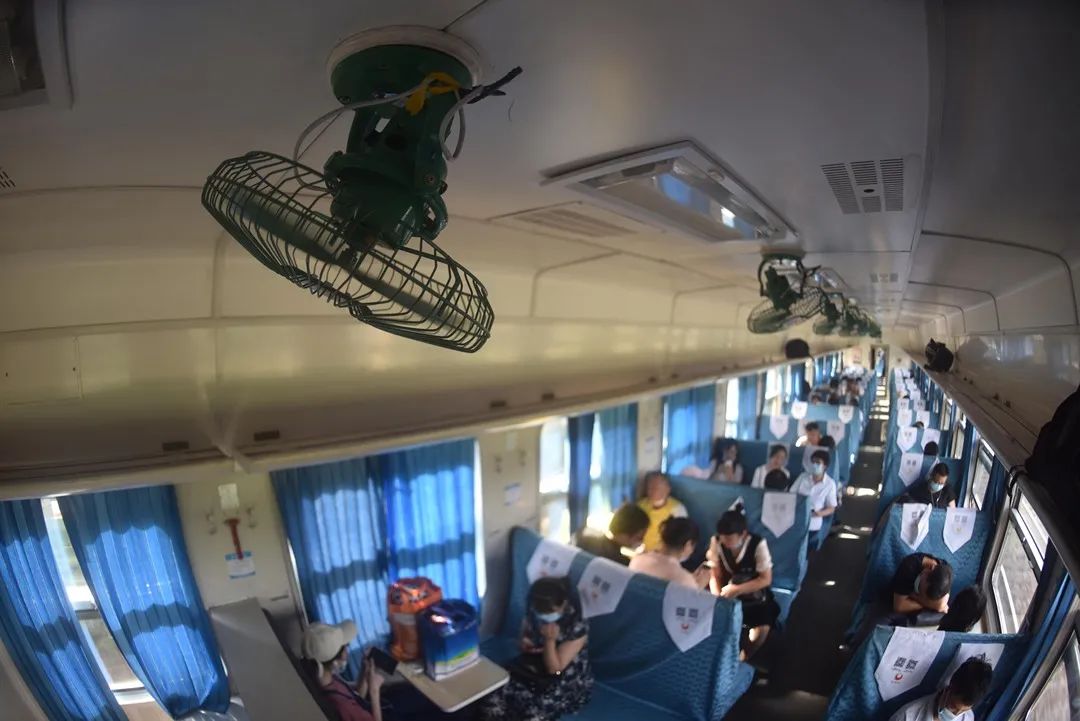 “慢火车”穿山越岭,一路向前。车厢内的座椅上套着浅蓝色的“凤舞楚天”椅套,整洁如新。
