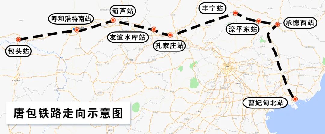 唐包铁路全长 852.419公里 ,由中国铁路呼和浩特局集团有限公司和中国铁路北京局集团有限公司共同运营,主要运输从内蒙古、陕北地区到曹妃甸港的煤炭以及其他白货。