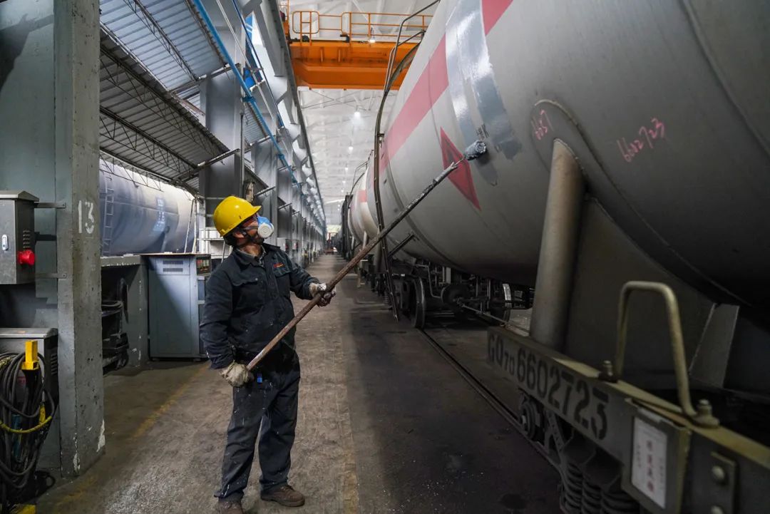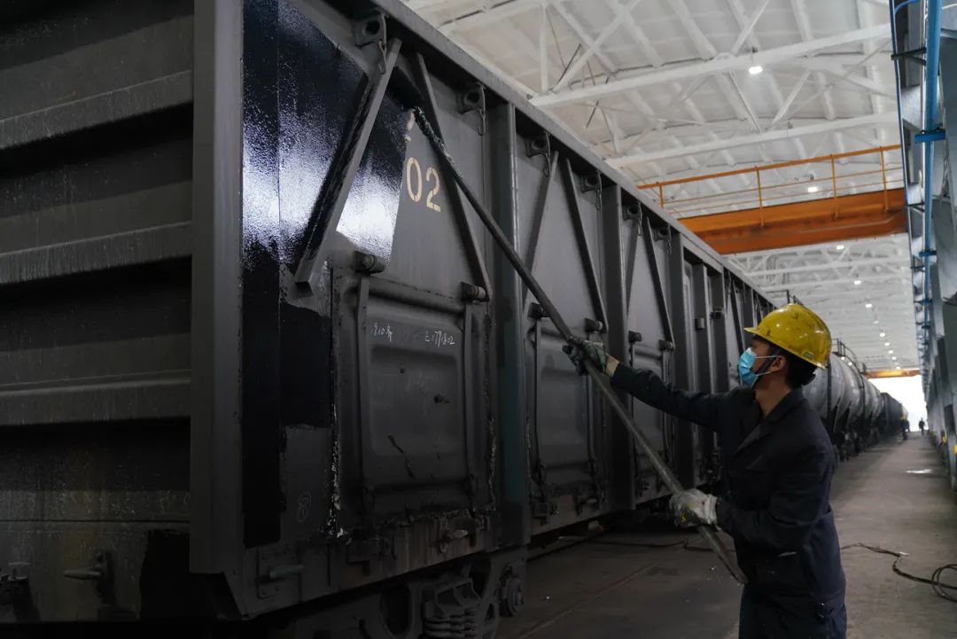 傍晚,随着验收员签好字,油漆组今天的任务顺利完成。进入春运,年关将近,各地区电厂使用原油、煤量大增,铁路专用油罐车、敞车需求量明显增加 ,黄桦军和同事们愈加忙碌。在预修棚里,他们就是一支奔走的铁路“迷彩军”。