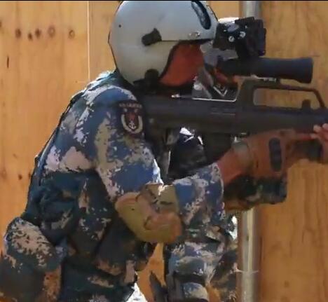 近日,中国海军陆战队蛟龙突击队反恐演练的精彩视频曝光,视频画面中,一名蛟龙突击队队员头戴配有全景式四目夜视仪的飞行员头盔出镜,甚为亮眼,而解放军海军陆战队绿色迷彩作战服也在视频中出现。