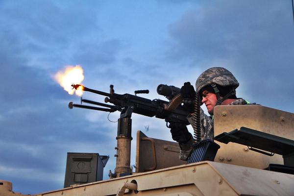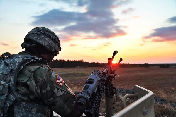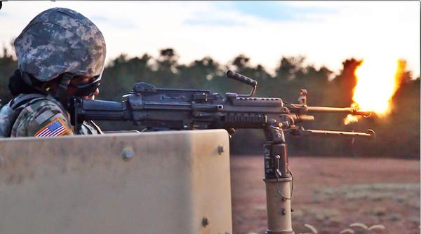 美国陆军“冷钢”行动 士兵训练M249机枪射击能力