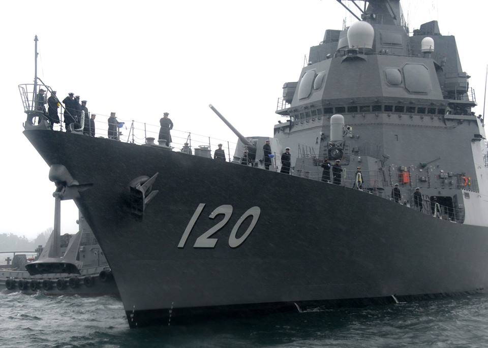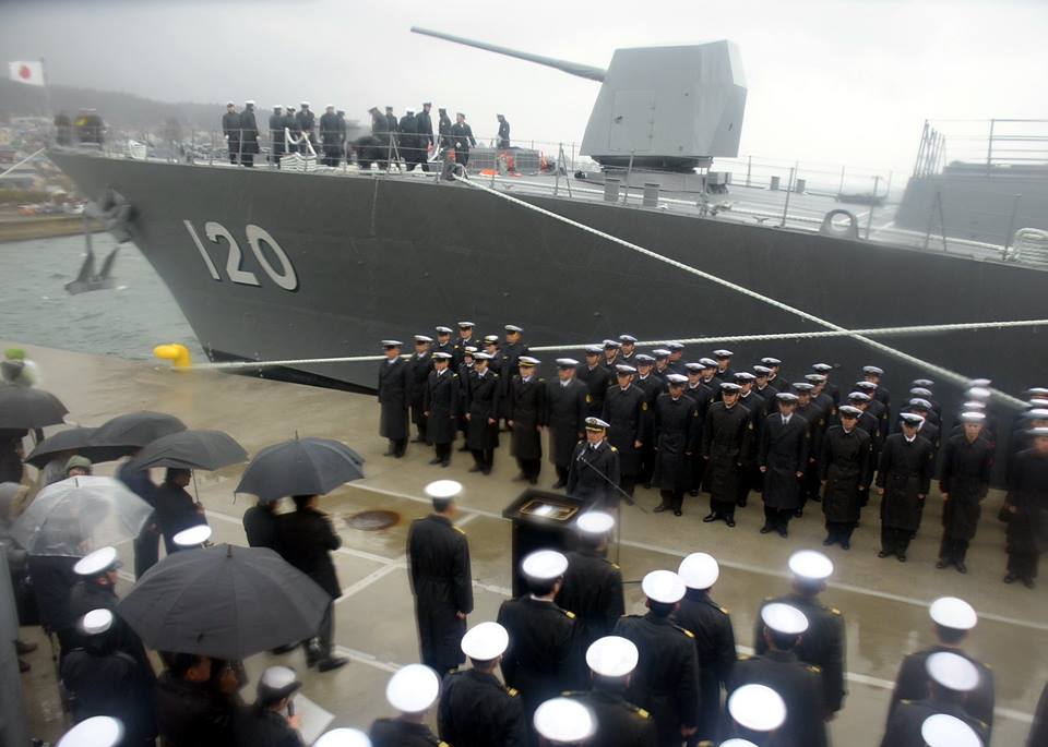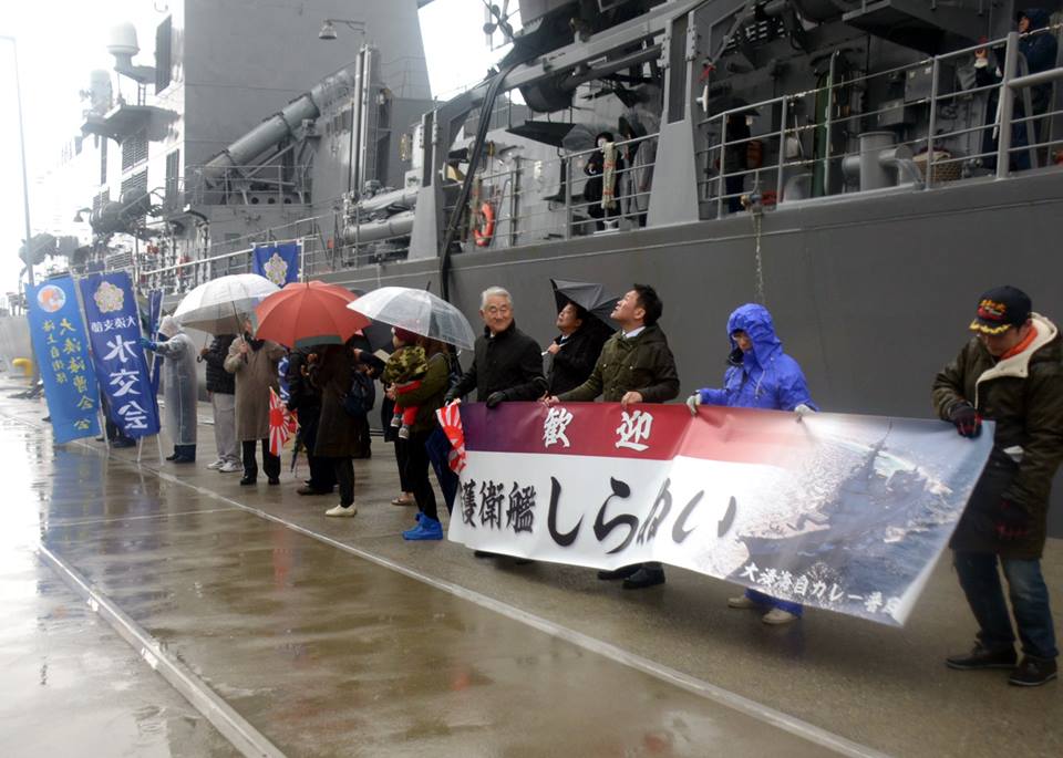 3月11日,日本海上自卫队的不知火号驱逐舰首次进入大凑基地,不知火号驱逐舰在大凑基地内接受了“自卫舰授旗仪式”