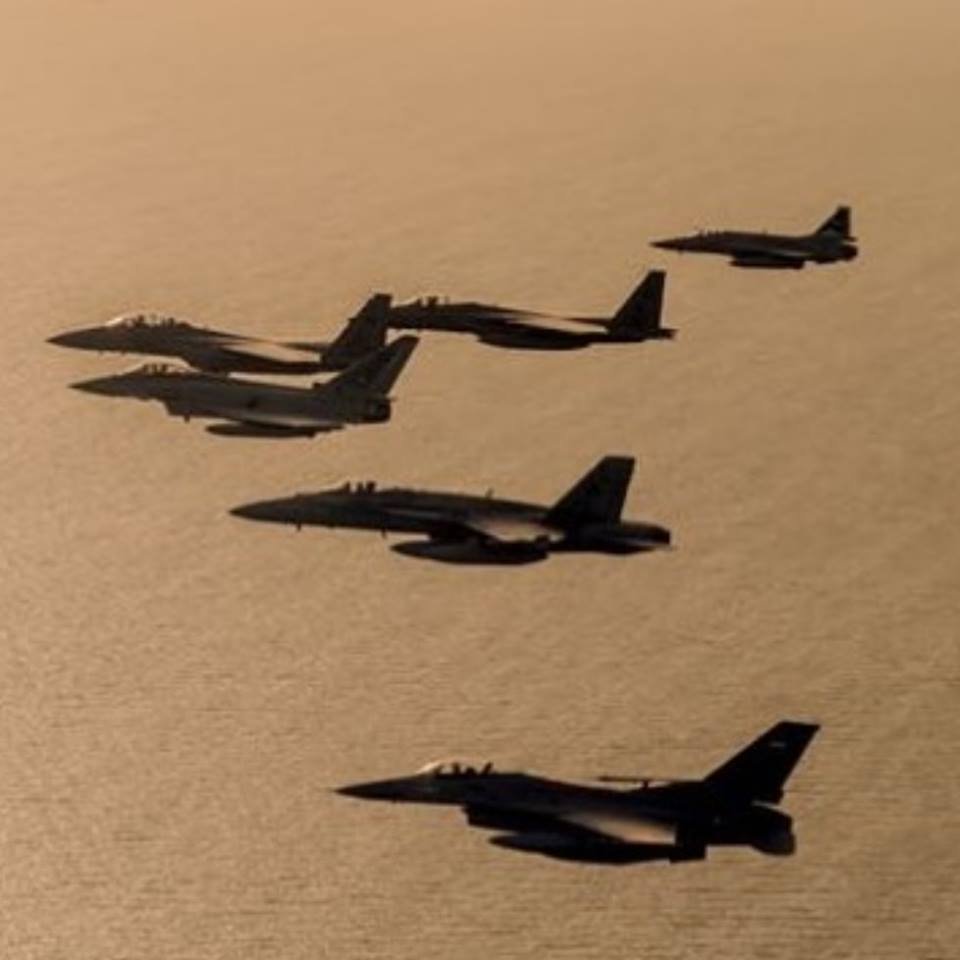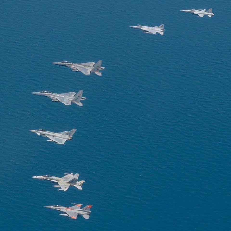 此前JF-17战斗机和其他西方战机进行联合演习的场景。