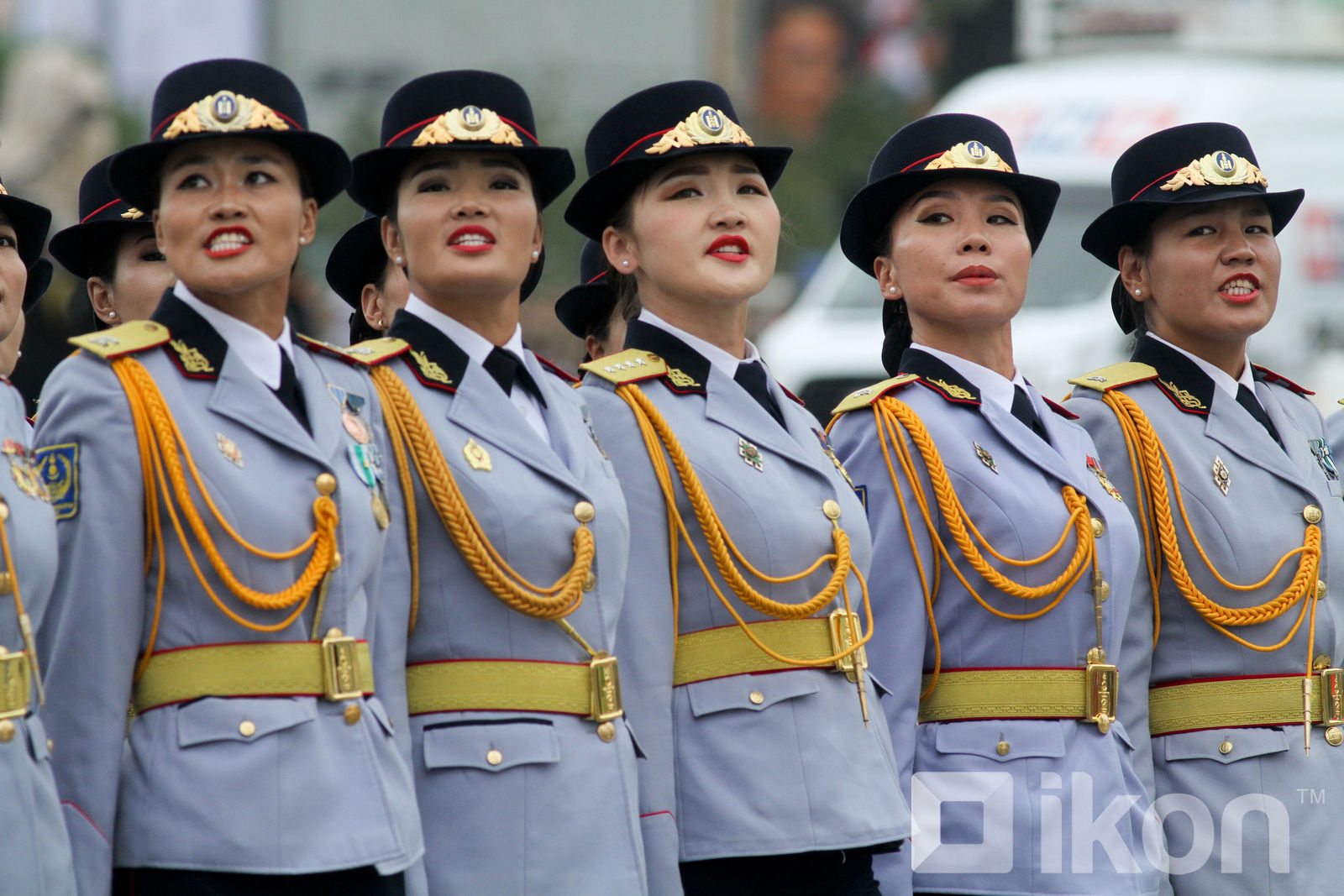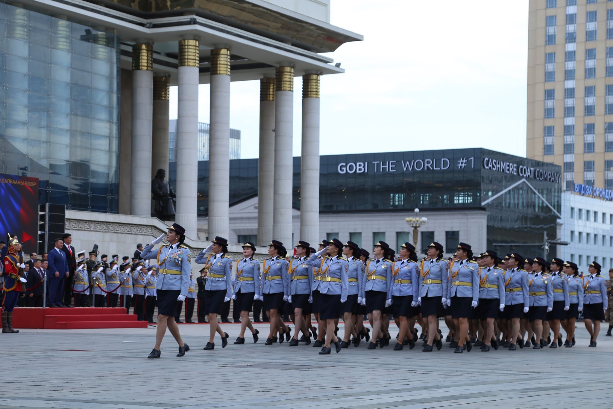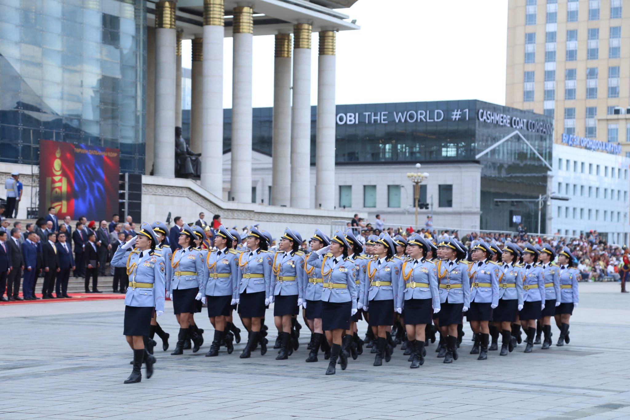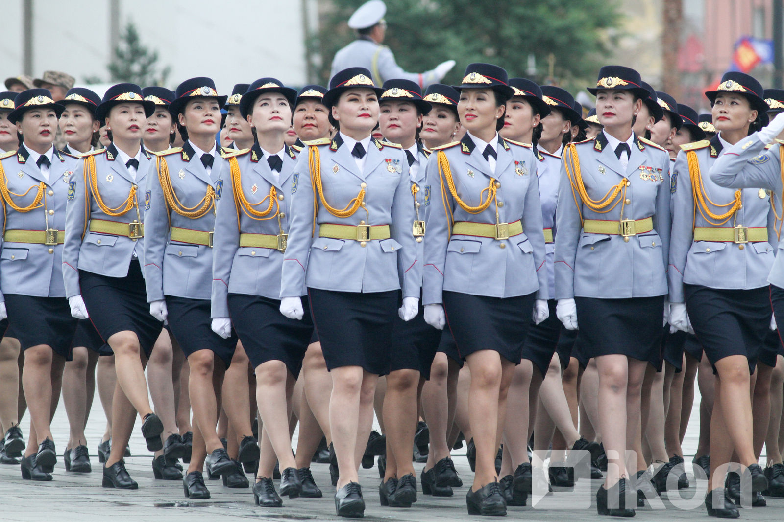 参加阅兵式的蒙古女兵,其军服深受苏联影响。