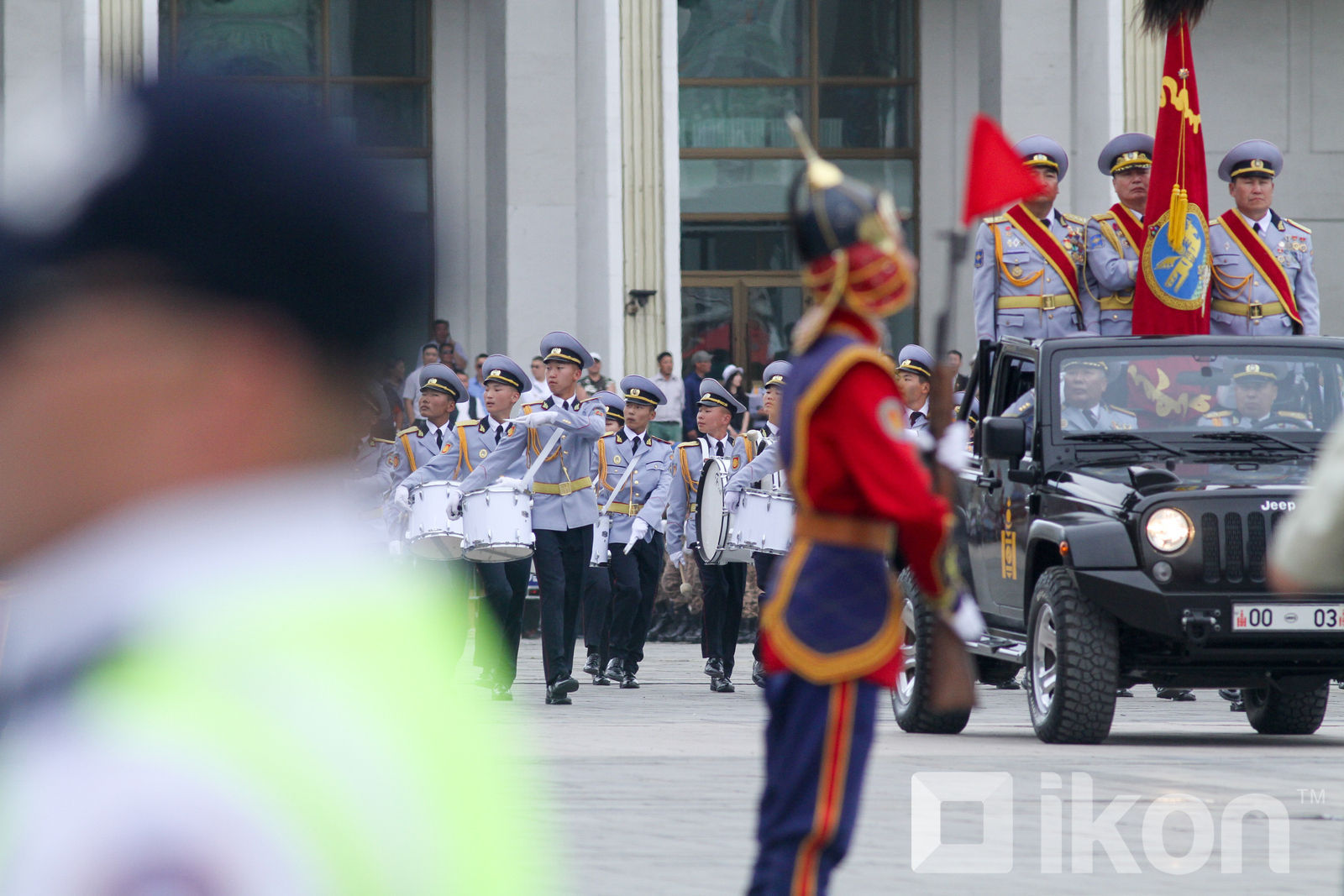 蒙古军队庆祝国庆阅兵 乘美国吉普检阅铠甲标兵