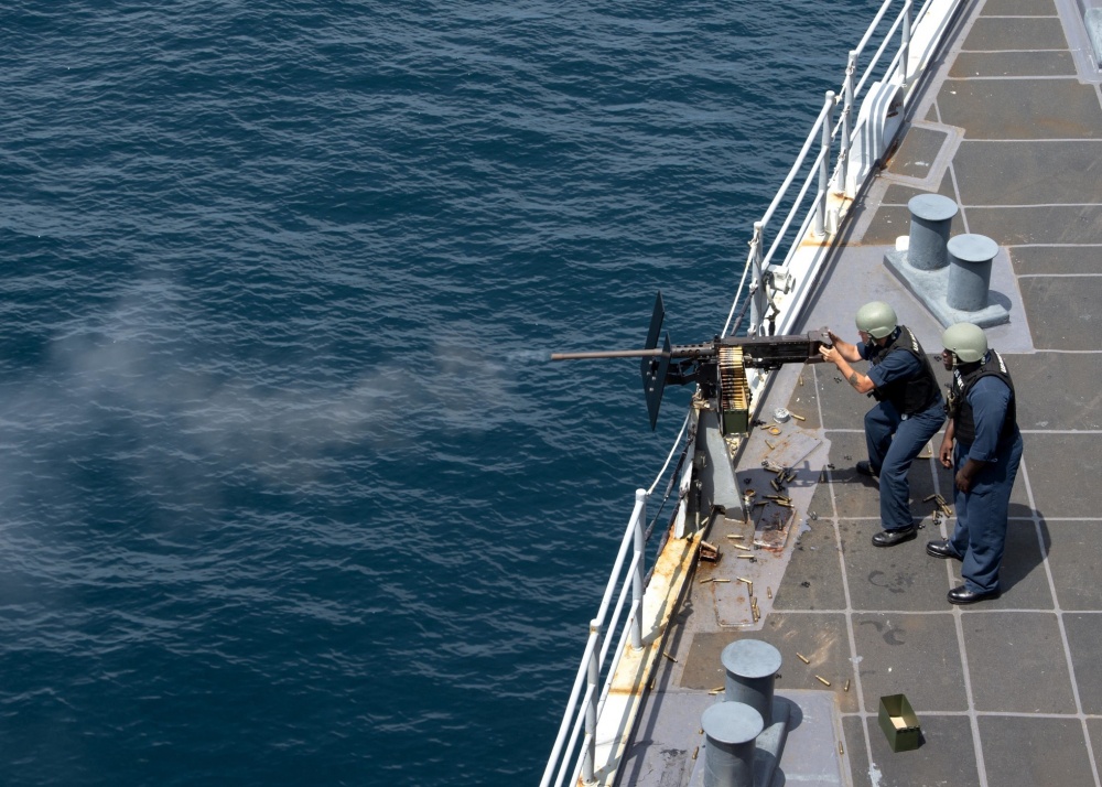 此次训练涉及了多个项目,包括气垫登陆艇(LCAC)的释放与回收、海上补给、近防导弹发射、重机枪射击以及舰载直升机起降等。