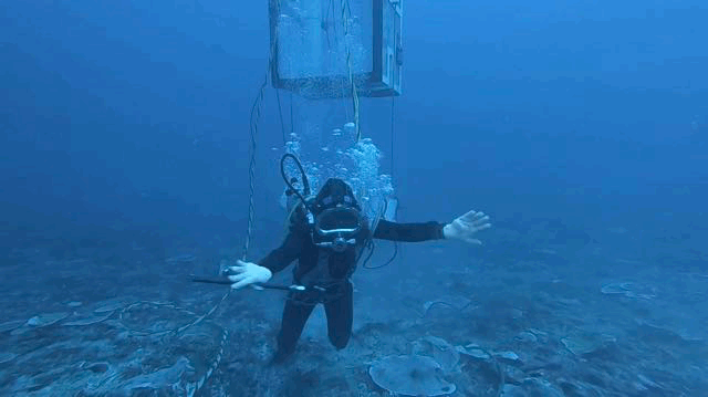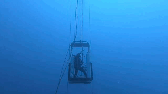 大深度潜水训练时,潜水员要承受水流和暗涌的冲击,大多数情况下要借助潜水吊笼下潜。