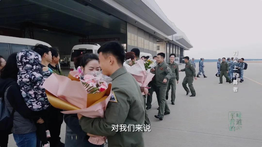 从航母回到训练基地,这批飞行员的家属也来到了部队,与他们一起庆祝。